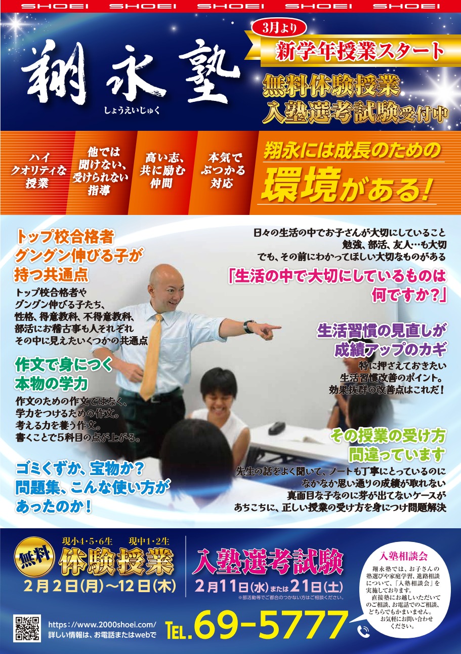 新学年授業は3月スタート。2月には体験授業を実施します。